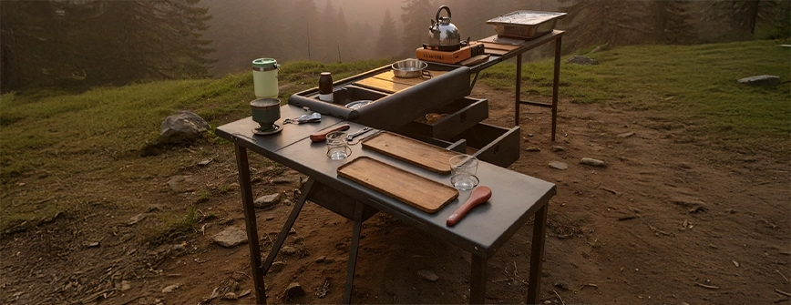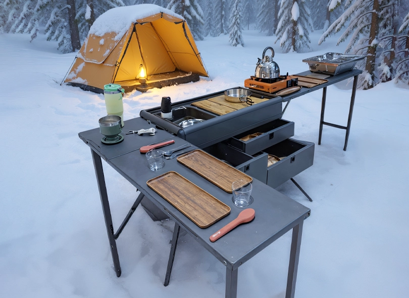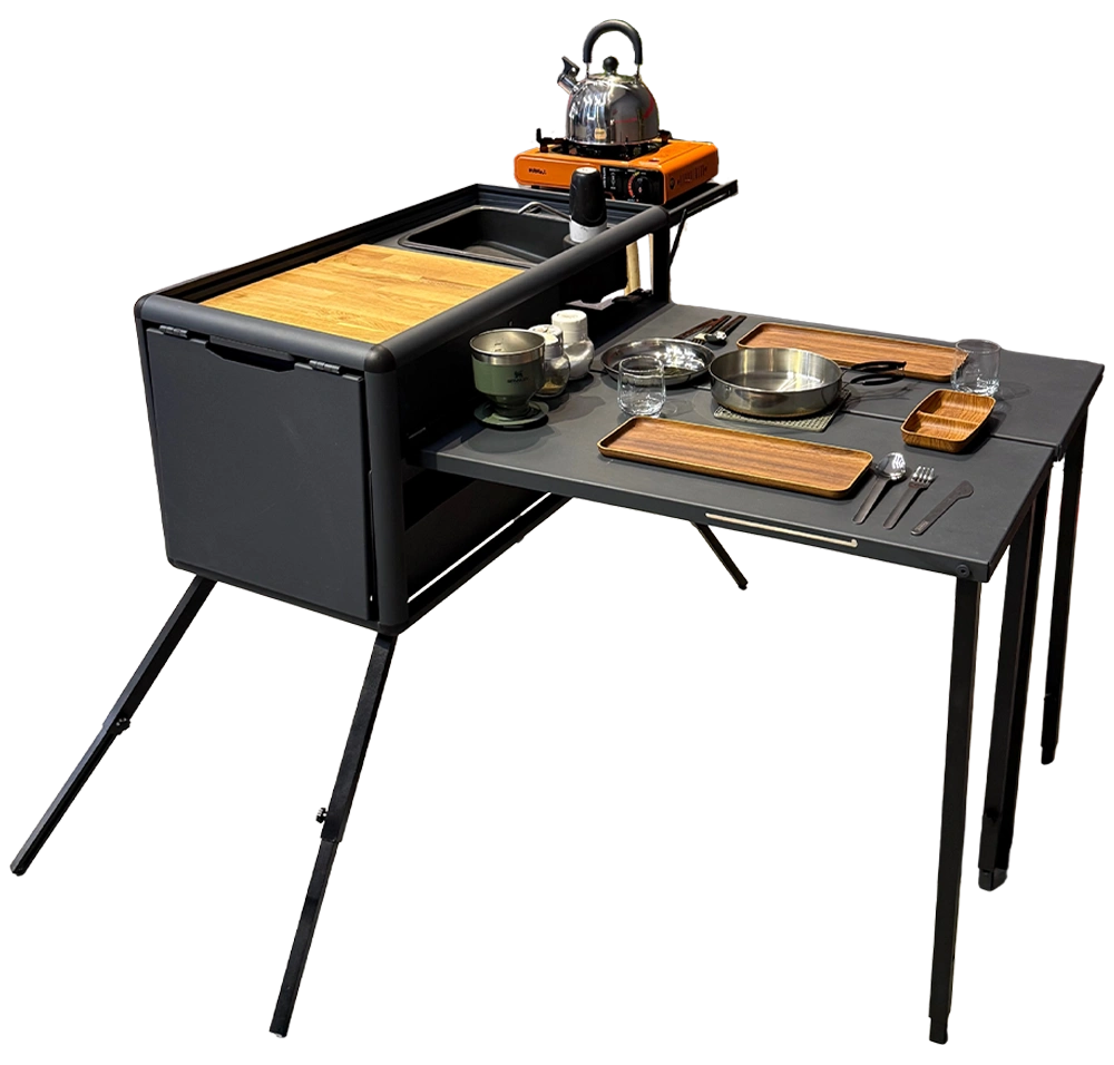 Yes. The 360 Modular Outdoor Kitchen folds down to just 90 × 45 × 45 cm, making it easy to transport and store in your vehicle, trailer, or cabin.